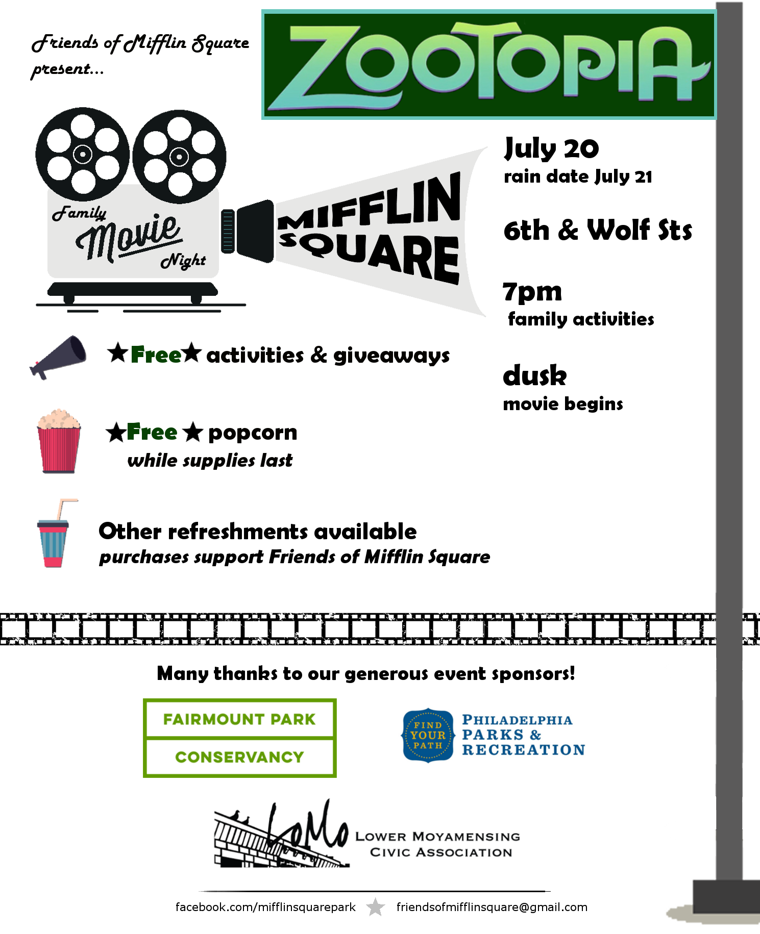 Movie Night at Mifflin Square on July 20! Posted on July 6, 2016July 21, 2016 by rachel Share this: Click to share on Facebook (Opens in new window) Facebook More Click to email a link to a friend (Opens in new window) Email Click to print (Opens in new window) Print Click to share on X (Opens in new window) X Click to share on Pinterest (Opens in new window) Pinterest Click to share on Tumblr (Opens in new window) Tumblr Like Loading... Related