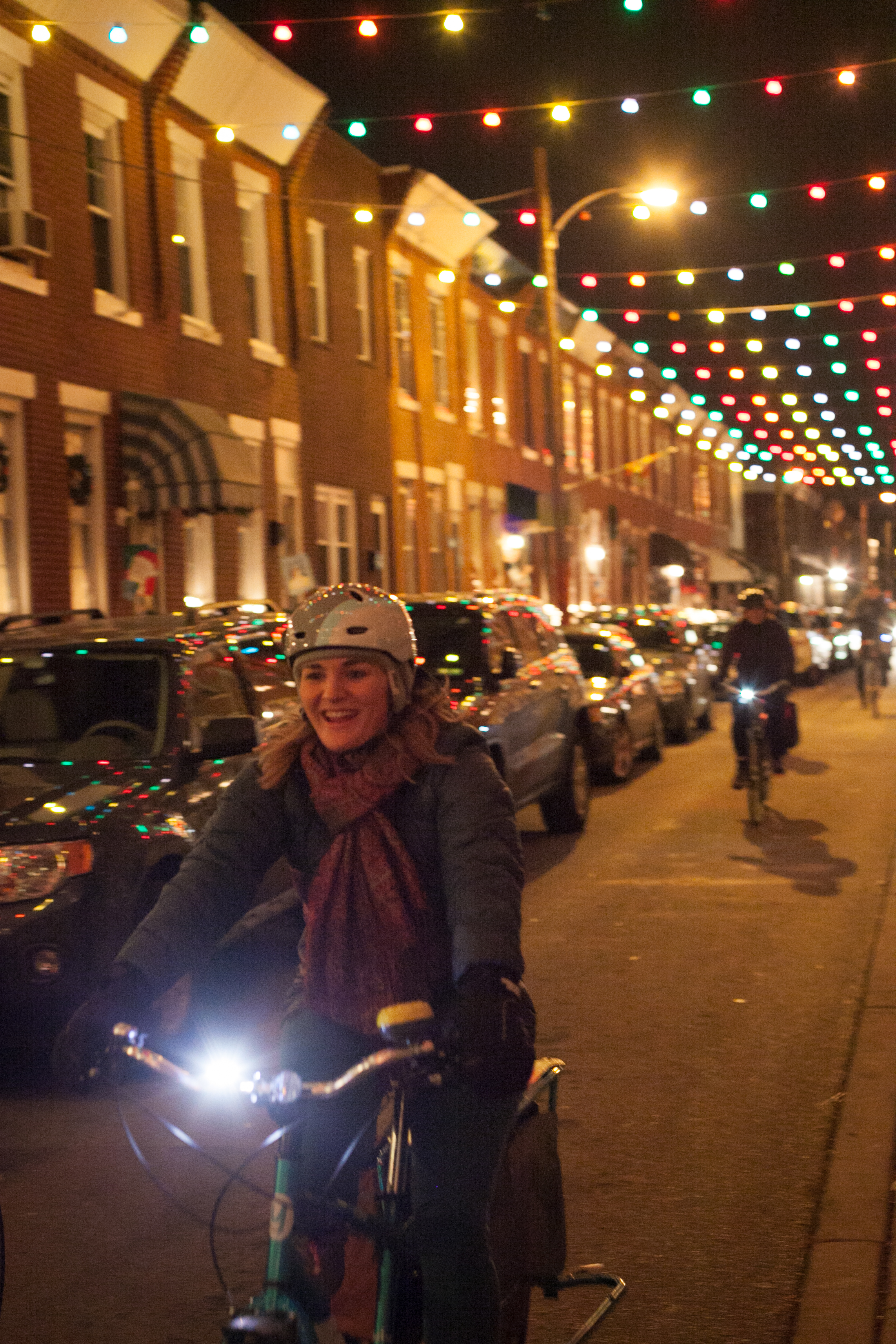 Want to get lit up in the holiday spirit this season? Sure you do! To help out, the Bicycle Coalition of Greater Philadelphia will hold our annual Holiday Lights Ride through South Philly on December 15th, where riders are encouraged to dress in costume and decorate their bicycles with lights, sparkles, bells and, well, antlers if you have them! We will be recruiting a special guest to judge the ‘best spirited costume’ and will announce the winner at the after ride location where the winner will receive a Saris, “The Hottie” bike rack!