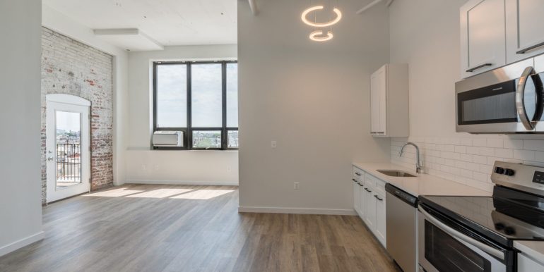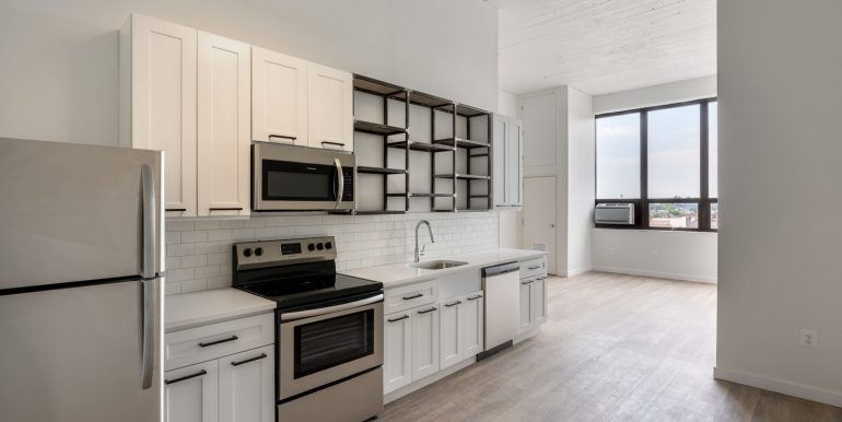 The Artisan Lofts, with its expansive (by comparison) windows, is set to have 151 units, 62 parking spaces, 3 car share spaces, and 24 spaces for bikes. The first-floor units along 12th sport what you’d expect in an urban warehouse restoration: white walls and white kitchen cabinetry, hardwood floors, and subway tile in the bathrooms. The ceilings are high. People are definitely curious: Are these truly market-rate apartments? How long will construction go on in the rest of the complex? Where did all those displaced pigeons go?