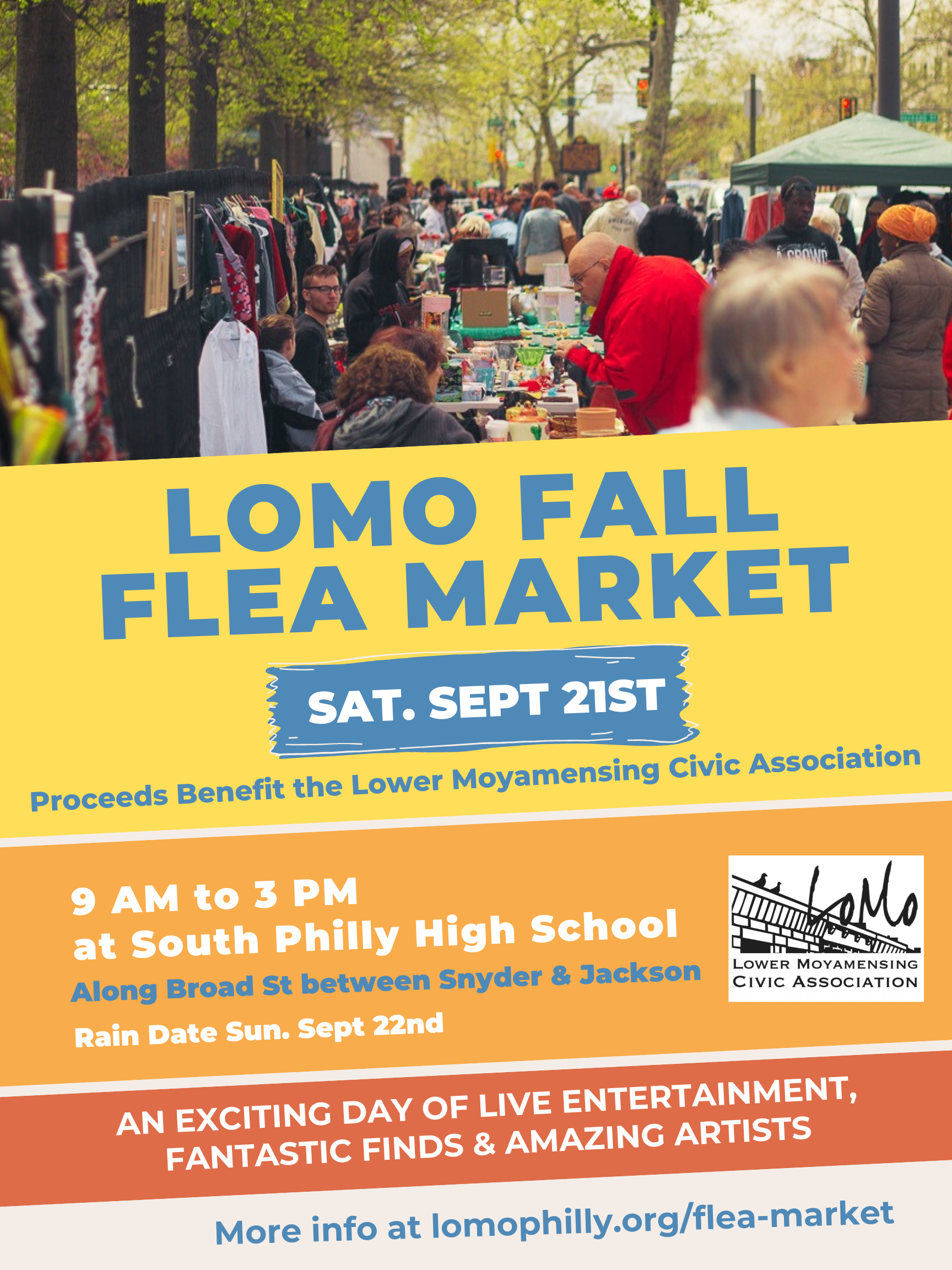 Join us at our Fall 2024 Flea Market on Saturday, September 21st from 9am–3pm along Broad Street outside of South Philadelphia High School (rain date: Sunday, September 22nd). The vendor registration page is now open — reserve your space today!