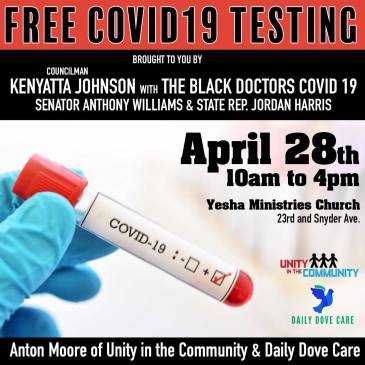There will be free COVID-19 testing, April 28, at 23rd and Snyder, from 10 am to 4 pm.
