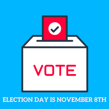 Register to vote: April 13 Primary deadline, October 19 General Election deadline. Go here for more information. Absentee Ballot Information is here.