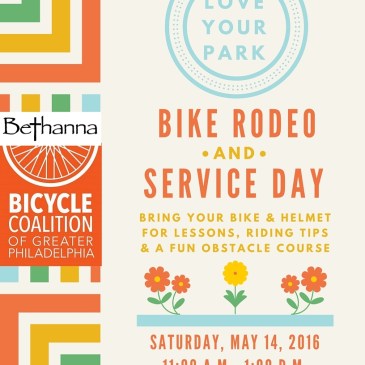 Join Friends of Mifflin Square Park, Bethanna, and the Bicycle Coaltion of Philadelphia for a fun afternoon in the park! Learn bike safety tips, ride a super-fun obstacle course, and help clean up the park. Saturday, May 14, 2016, 11:00 AM *Parents/caregivers must sign a waiver for children to participate in the bike rodeo*