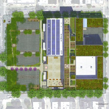 Inspired by the success of their first formal partnership and foray into greening the community, a student-led vegetable garden, LoMo and SPHS decided to think about the school’s campus in a comprehensive manner. Instead of greening the one square block, 5.5 acre, campus through independent, piecemeal projects, why not create a comprehensive master plan that would transform the entire campus from the rooftop to the parking lot!